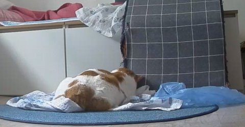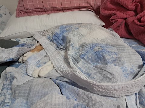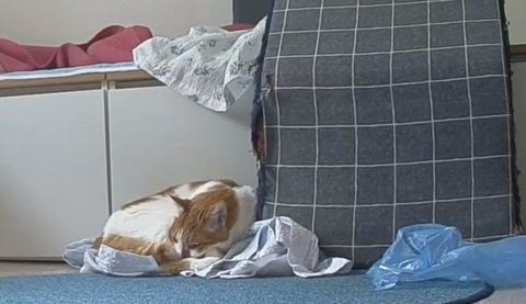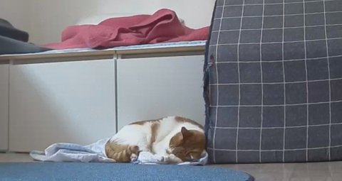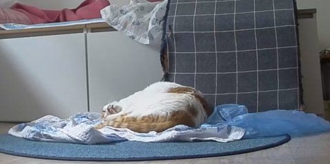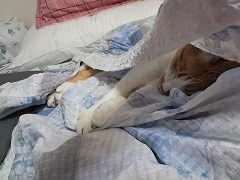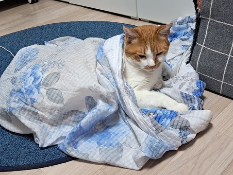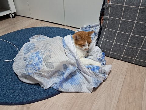집사물건이라 그런지 이불덮고 자고 있음.
