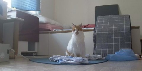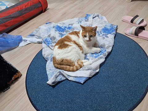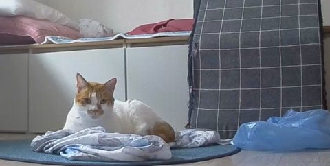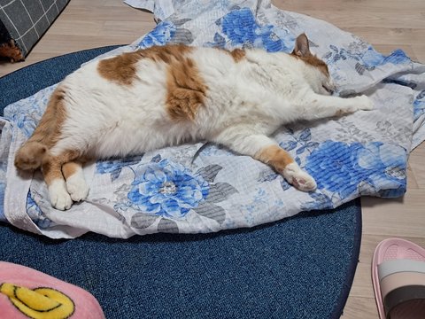 아니면 사랑하는 집사 여름이불이 바닥에 있기 때문인가??