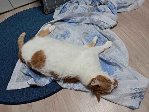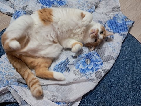 벌러덩 애교도 이불과 함께 하고 있음.