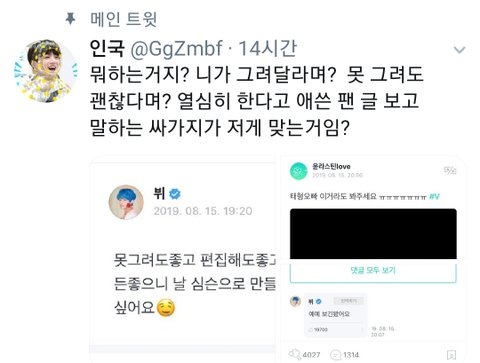 와 정국이 까던 패턴 존똑으로 뷔로 바꾼거봐ㅋㅋㅋ