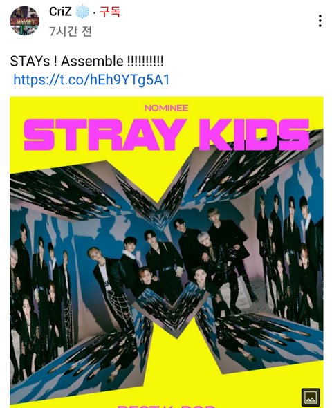 Vma투표 링크(4세대유일 후보 스키즈!)