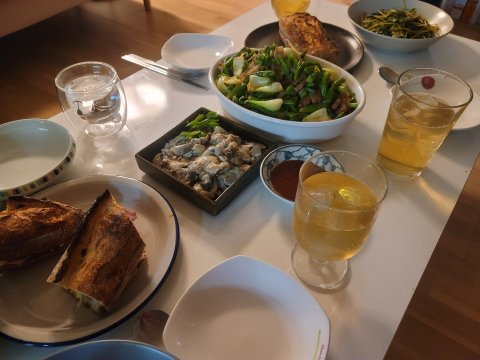 잠봉뵈르 샌드위치, 생굴, 돼지고기청경채볶음(중국식)