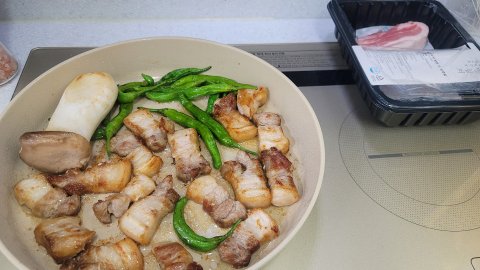 꽈리고추랑 같이 구우면 꽈리고추의 향이 은은하게 베어서 더 맛있더라구요.
