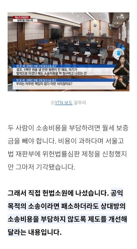그런데 법원이 맞말한 장애인들더러 1천만원을 내라고 함;