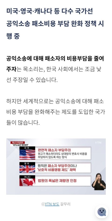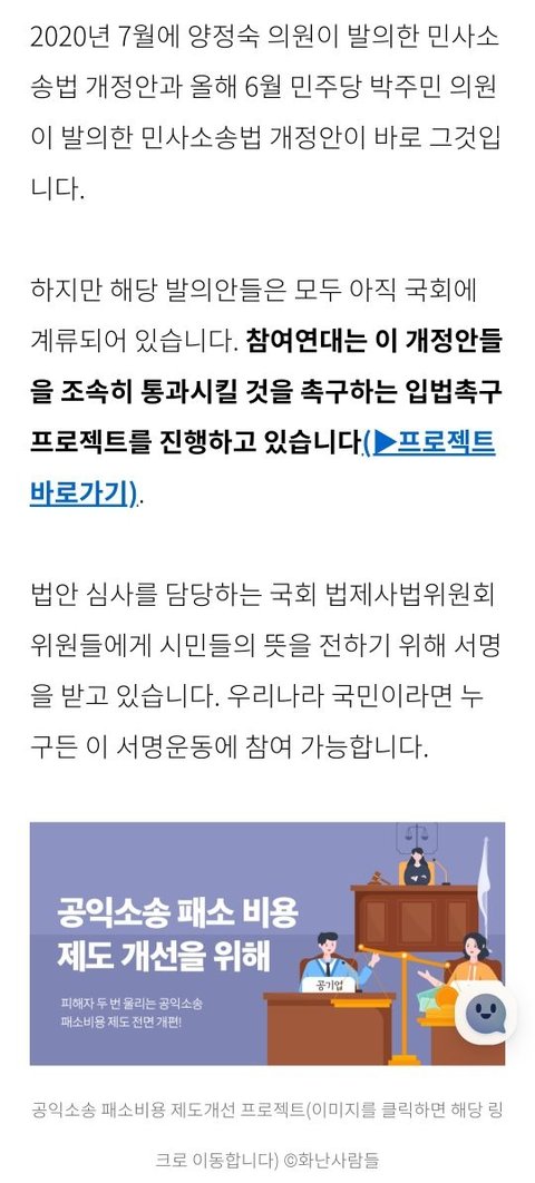 이미 다른 나라들엔 공익소송에 대해 비용부담을 줄여주는 제도들이 많아