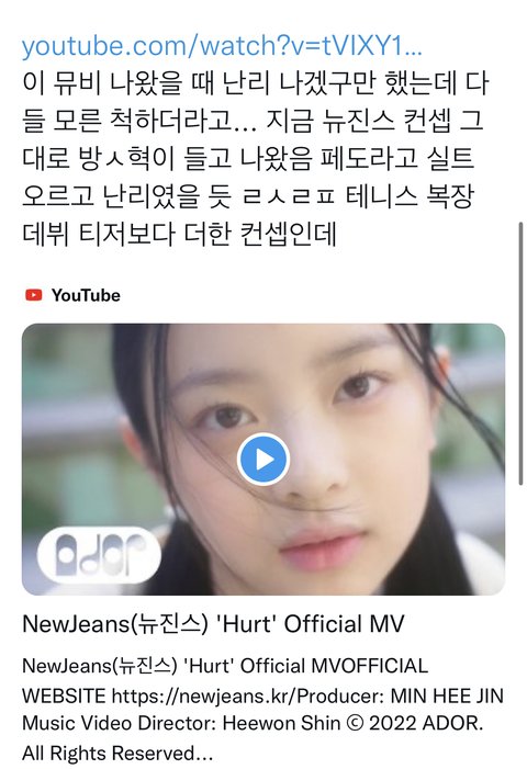 근데 뉴진스 hurt 뮤비는 왜 문제라는거야?