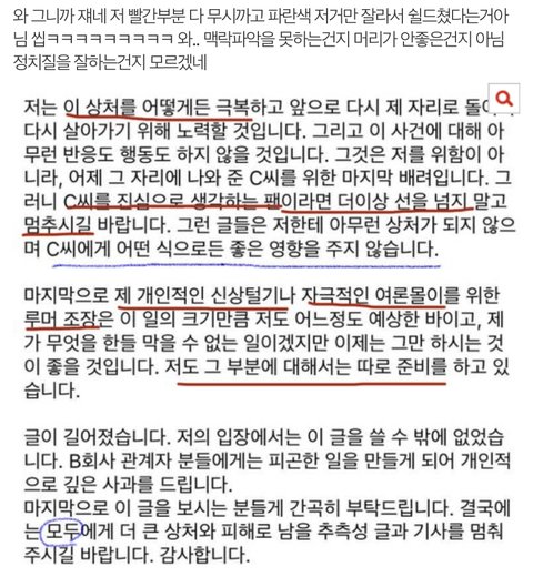그 글이 이 해명글임ㅇㅇ(아이린 팬들이 에프엑스 욕한 에디터다, 영동대로 스타일리스트다 라면서 루머 퍼뜨리고 에디터 싸불 ㅈㄴ해서 올린 글)