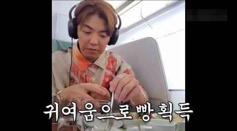 먹기 전에 무릎덮개 해주는 이상화 손ㅎㅎ