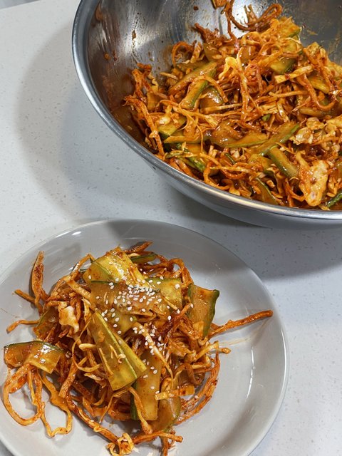 대충먹고싶어서 양배추 오이 진미채 이것만 넣고 무침
