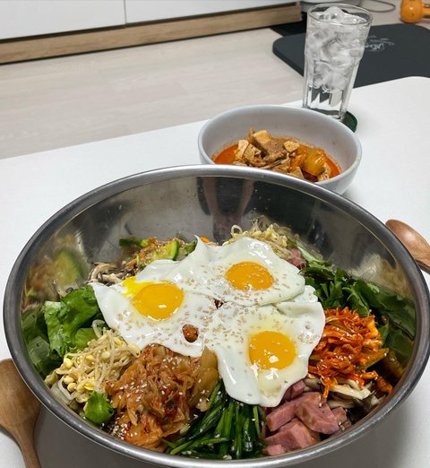 퇴근하자마자 바~로 싹 꺼내서 비빔밥 먹었지여