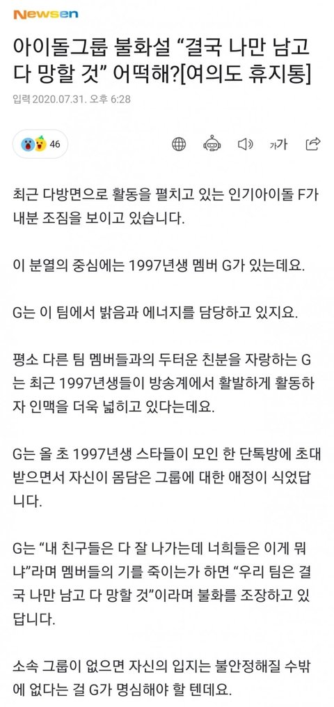 애초에 저게 프미나라는게 말도 안됨... 유튜브에 브이앱만 봐도 저런말할 팀분위기가 아니던데ㅋㅋ 까려는게 아니라 멤버들이 대체적으로 기가 쎈편이라
