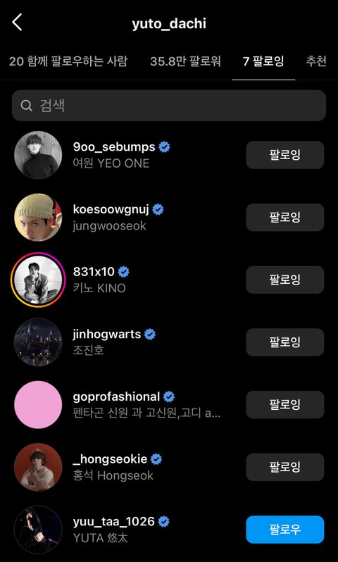 지금 봤는데 유토 인스타 팔로우 목록에 ㅇㅌ님 있으시네
