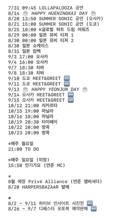 일본 다녀와서 ? 그러기엔 당장 다음달에 예판 시작인데 불가능인가 아시아투어 끝나고 11월에?? 그럼 연말 무대까지 같이 준비해야하니까 애들 너무 바쁠텐데 모르게따..