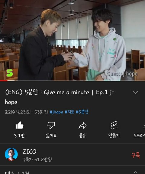 지코유튜브컨텐츠에 제이홉나왔네ㅋㅋㅋ 제이홉은 여기서도 왜케해맑아