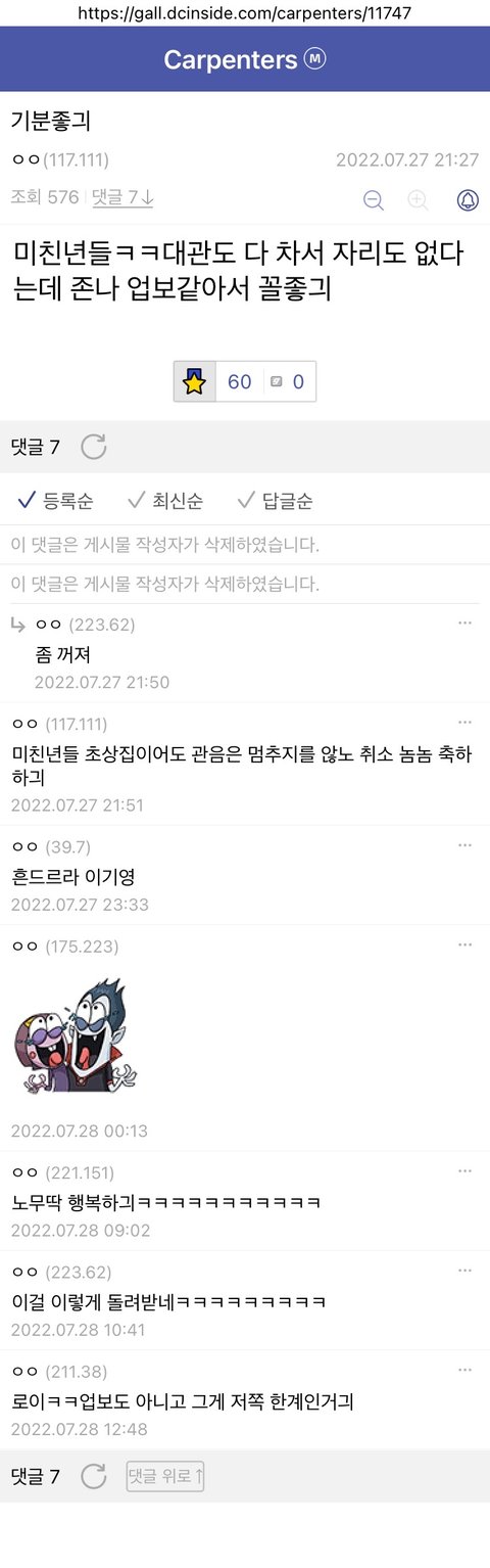 계속 어그로 끌어봐ㅋㅋ 재개콘서트에 앙콘까지 확정 땅땅해서 망이칠 앨범 가뜩이나 안살텐데ㅋㅋㅋ