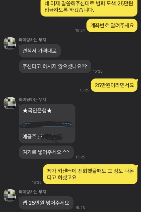 그래서 범퍼 25만원을 입금하고 끝냈습니다