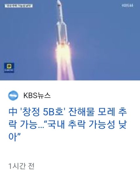 내일 31일에 중국에서 만든 창정5B가 떨어진데 근데 울나라에 떨어질확율은 적데 모두 뚝배기조심하자