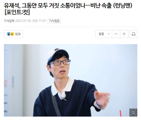 유재석, 그동안 모두 거짓 소통이었나…비난 속출 (런닝맨)[포인트:컷] :: 네이버 TV연예 (naver.com)