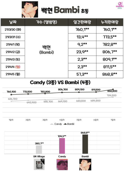음반 인플레전 21년도 백현이 초동인데 전역하고 컴백하면 최소 150은 예상함 아미들 방탄 솔로로 나오면 다 씹어먹는다더니 아무도 백현이 초동 못넘을듯