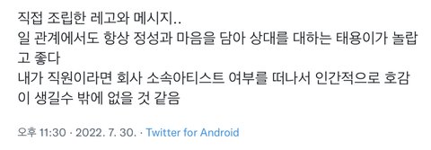 예전에 내가 쓴 글인데 오늘 또 이생각 들었어.. 여기저기 진짜 싹싹하게 잘해… 오늘 유튭에서도 매니저분이랑 관계자분들이랑 저녁 먹는것도 그렇고ㅜㅜ