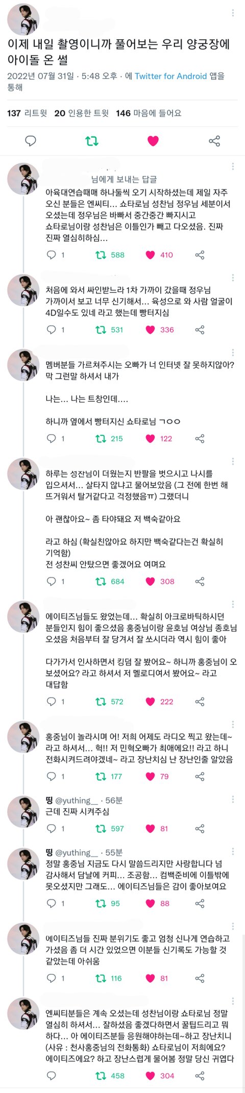 엔시티 쇼타로 성찬 정우 에이티즈 홍중 윤호 여상 종호 비투비 민혁