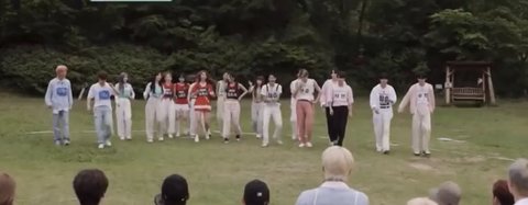 블랙맘ㅂr 나오니까 단체로 납작해지는거 개웃김 안무 몰라도 앞뒤옆으로 다 바닥에 기니까 따라서 납작해져야함ㅋㅋㅋㅜㅜ 여기서 틀리면 이제 개티나는거임 와중에 분홍바지를 입은 어떤 남자는 다리가 너무 길어서 쉽게 뻗지 못해요
