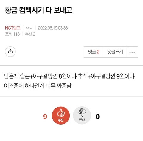 드림은 천재지변 당해서 일정이 미뤄진거고 127은 태생이 늙은 노안 뚝딱그룹라 그룹 수명주기가 다해서 9월 연말 짜투리에 컴백하는 뒷방 늙은이된걸 팬들이 깨달아서 절망하는거고