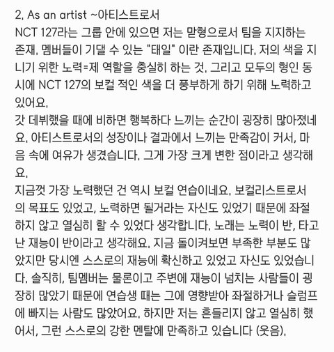 nct 127 그룹 안에서는 맏형으로서 팀을 지지하는 존재,멤버들이 기댈 수 있는 존재라는거 눈물나네…ㅠㅠㅠ마지막 터닝포인트 읽을 때 조심하세요