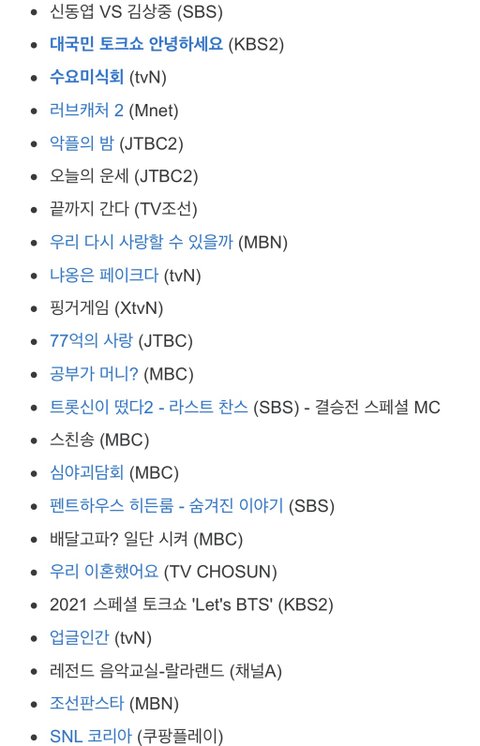현재 출연작 8개 모두 실내 스튜디오 방식