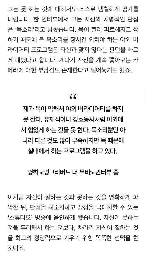 목이 약해서 야외버라이어티를 못 한다고...ㅠ