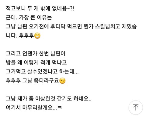 밑에 올릴 사진속 내용 처럼 남편한테 적게 먹는 여자로 보이고 싶어해서 남편오기전에 미리 밥먹고 안먹은척 남편이랑 먹을땐 조금 먹는등..
