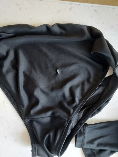사진은 구멍난 수영복 사진이에요. 그나마 팬티랑 레깅스 이중으로 입어서 덜 다친거고 반사적으로 엉덩이 들어서 망정이지 늦게 반응했으면 진짜 수영복에 불붙고 더 다칠뻔했을텐데 어휴... 기억에 남는 신혼여행 만들어줘서 신화월드 너무 고맙네요~!!