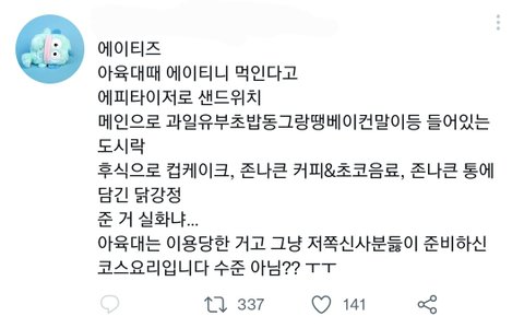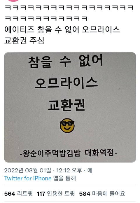 그리고 에이티즈 금요일에 컴백했거든.. 시간이 없어서 식권으로 돌린게 저렇게 된 것 같음ㅠㅠ 팬사랑 넘치는 애들인데 이런거로 까이니까 슬프네