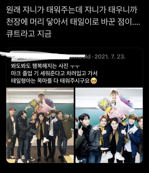 마크 웃는 게 진짜 너무 그 나잇대처럼 햇살같이 웃어서 가슴이 애림 그리고 몰랐던 귀여운 일화까지… 햇짠이도 졸업했다면 어땠을지 궁금해지고ㅜㅡㅠ 일리칠 넘 좋음….