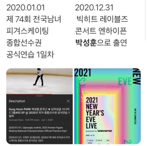 엔하이픈 데뷔일은 2020년 11월 30일 정확히 데뷔하기 1년 전에 피겨 최고 급수 딴거임 (2017년부터 2년간 피겨 선수와 아이돌 연습생 병행 했다고 함)