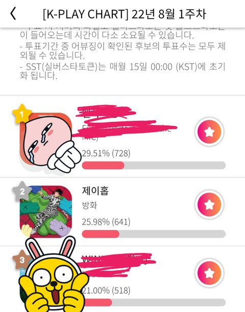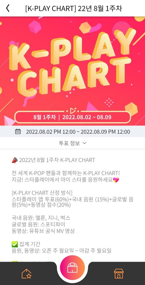 스타플레이 어플에서 투표중인 차트 투표인데 음원이랑 뮤비 시청점수 다 계산 후에