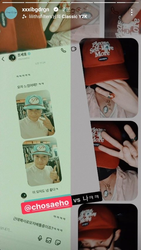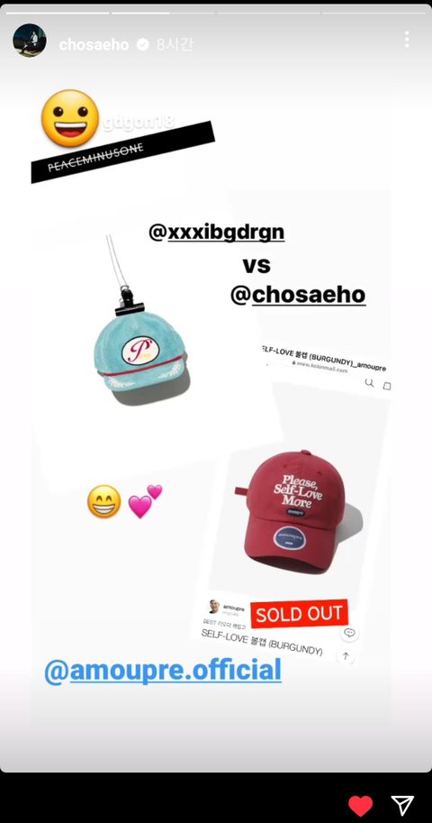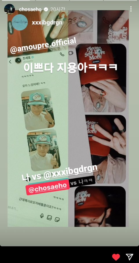 지디는 조세호브랜드 모자를 썼고 조세호는 지디 피마원 모자를 썼음