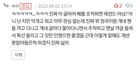 ㅂㅅ들 매번 뷔 정국 까글마다 몰려와서 주작하는거 지들이라고 티 못내서 안달