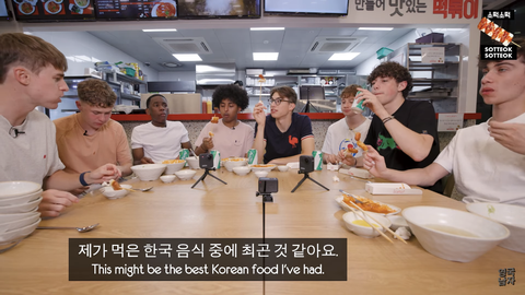 한입 남은 소떡소떡 번쩍 들고 이야기하는 거 너무 귀여워