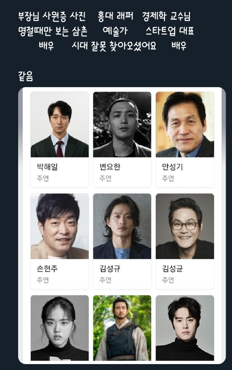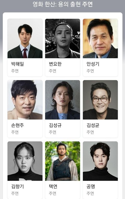 특이점이 온 영화 <한산 : 용의 출연> 배우들의 프로필 사진