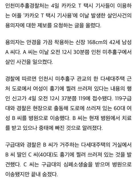 요즘 인천 진짜 왜이럼?? 어제도 용현시장근처에서 칼부림나고 자해했다던디