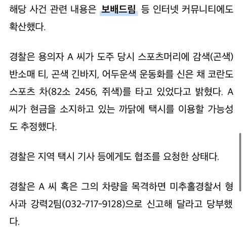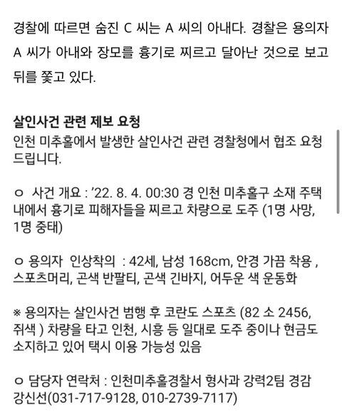 인천에서 차량 긴급 수배… 잔혹 살인사건 용의자 타고 있다
