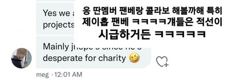 제이홉 악개가 이번에 지민이 조카 팬거 올려줄까? 신고계에 너무 많이 올라와서 한번에 올리기도 힘든데 이거 하나 가져와서 뭐함? 이간질함?