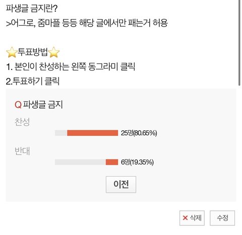 파생글 금지 투표 결과>찬성