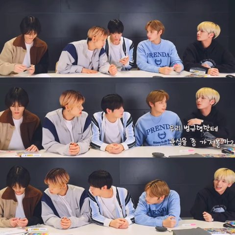 이건 범규 형 그림 그리는데 다른 멤버들이 디지몬에 빠져있으니깐 집중해 주는 거 어떠냐고 묻는 강태현..