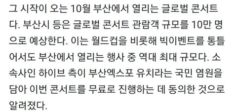 왜 국가행사에 무료콘까지 해주는지 솔직히 모르겠음 기사에 공연장 관련도 있어 출처 https://n.news.naver.com/article/658/0000016729?sid=102