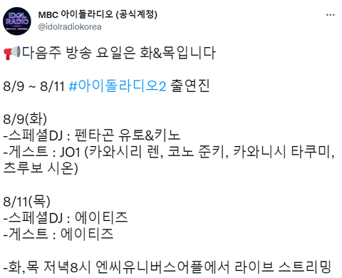 https://twitter.com/idolradiokorea/status/1555739352201760768?s=20&t=D9iaex5a80c3H9QEZMgl5g