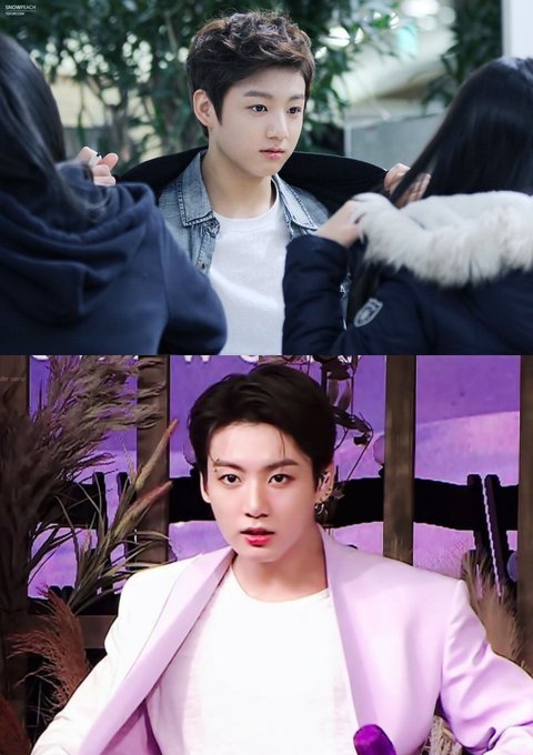 원래도 동그란 턱라인이었음. 팬들도 턱 짧다고 하지 V라인이라고 하질 않는데 왠 턱이 변했대? 정국이 잘생긴더나 보고가라