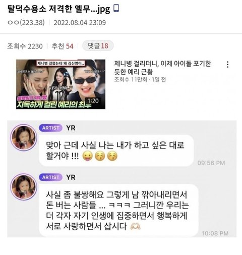 예리 별로 호감아니었는데, 저 저격내용보고 급호감됨 ㅋㅋㅋㅋㅋ