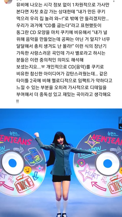 저런 애들 뮤비는 봤을까 싶음.. 그냥 첨부터 CD=쿠키 라고 나오는데 너무 창조논란같음 민희진의 씹스러운 취향과 뉴진스는 그냥 별개로 봐주면안됨?